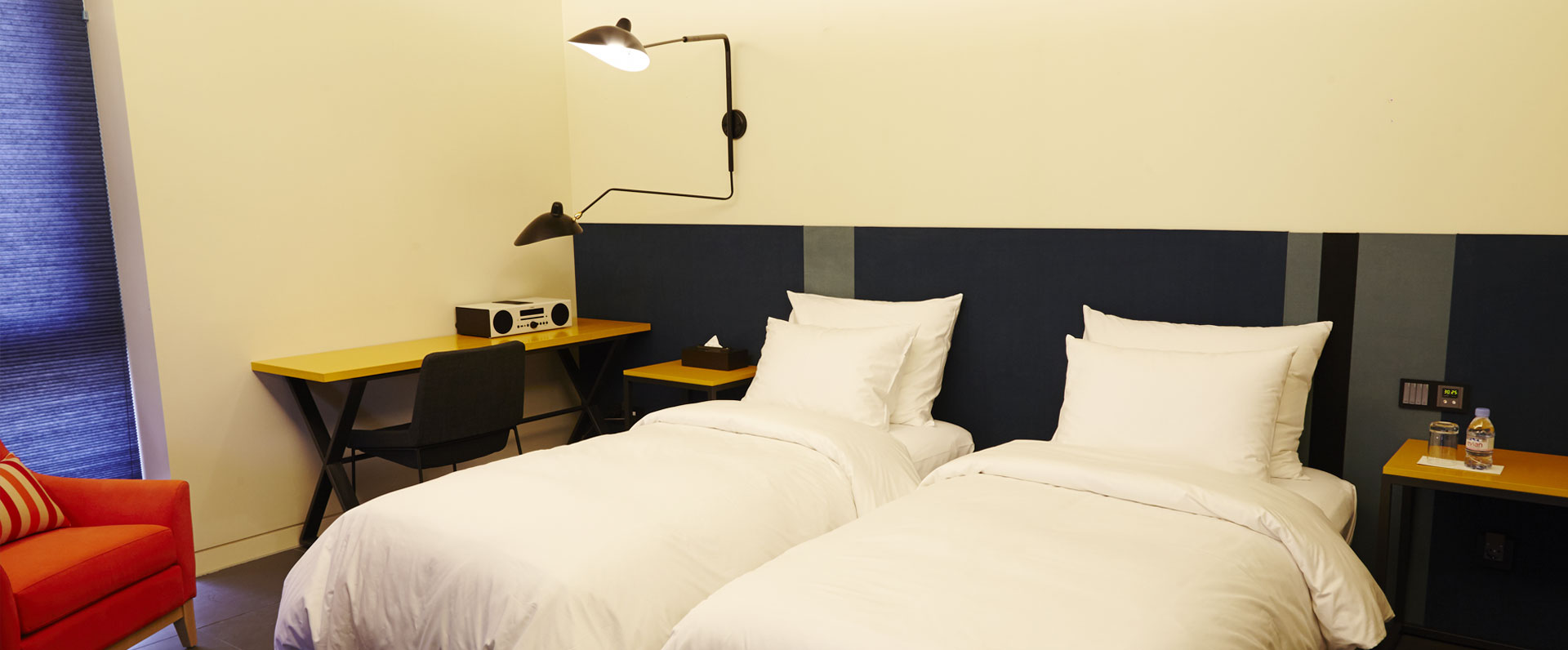 특별한 인테리어와 유니크한 콘셉트의 다양한 객실이 있는 부티크 호텔이다. 미니 뷔페 형식의 조식, 구두 클리닝 머신, 맞춤 이벤트 지원, 노트북 대여(선착순) 등이 제공된다. (입실 16:00 / 퇴실 : 12:00)